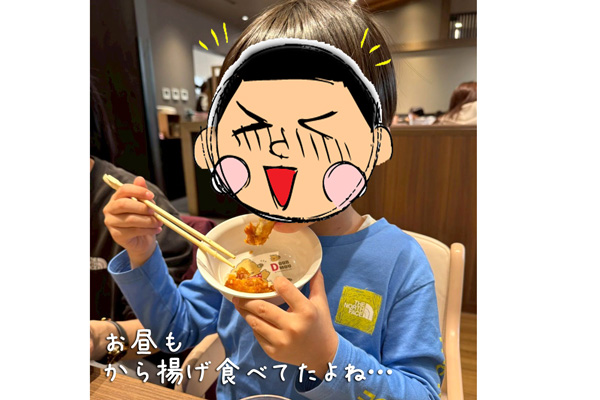 ホウトウと唐揚げをもりもり食べてた