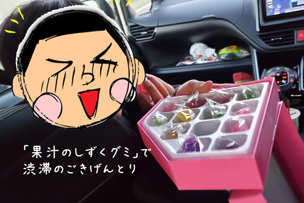 帰りは渋滞にハマりました。子供達ブーブー言うのでお菓子あげた。